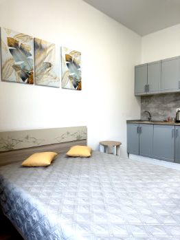 Есть все необходимое для комфортного проживания - кухня, кровать, необходимая техника.