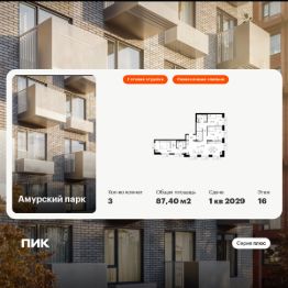 Продаётся 3-комн. квартира площадью 87,4 кв.м на 16 этаже 19 этажного дома (Корпус 4.4, Секция 5) проекта ПИК Амурский парк. Светлый просторный подъезд на уровне земли, функциональная планировка, большие окна, c отделкой.