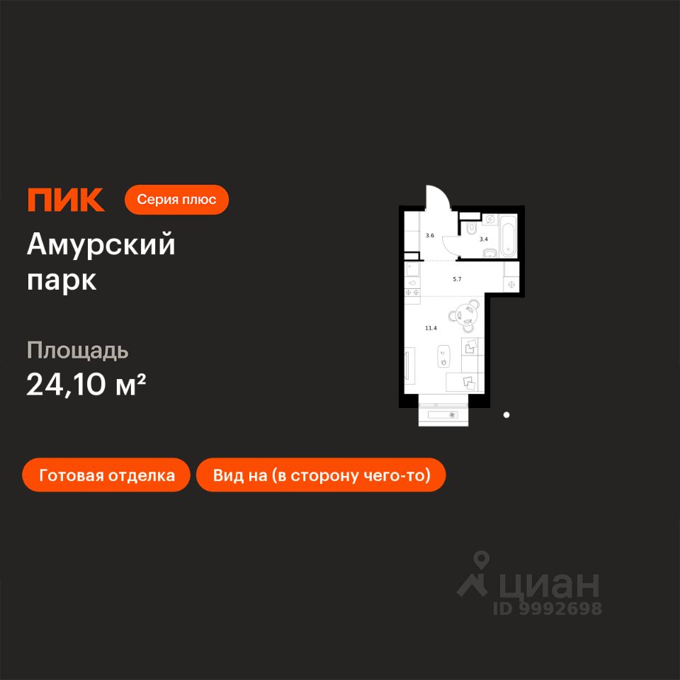 Продаётся квартира-студия площадью 24,1 кв.м на 10 этаже 12 этажного дома (Корпус 4.2, Секция 2) проекта ПИК Амурский парк. Светлый просторный подъезд на уровне земли, функциональная планировка, большие окна, c отделкой.