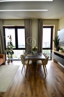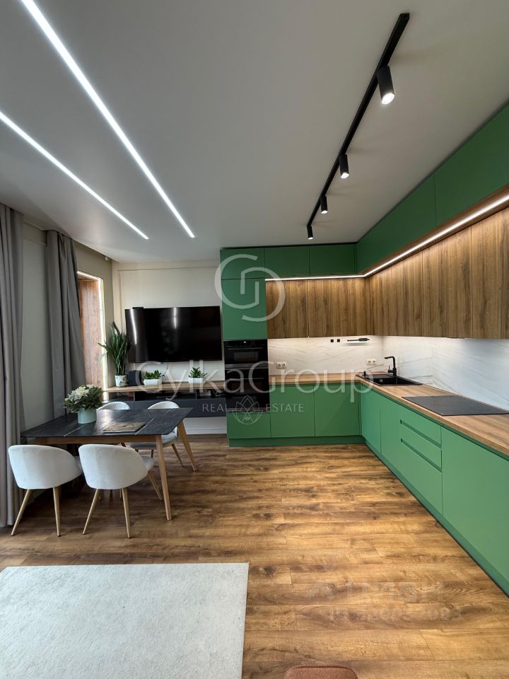 В квартире выполнен дизайнерский ремонт с использованием премиальных материалов, известных зарубежных брендов, итальянская бытовая техника, немецкая сантехника.