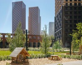 У проектов будет общая инфраструктура и благоустроенная территория. Уже открыта часть пешеходного бульвара, который строится по проекту британского бюро. Здесь можно гулять после работы, играть с детьми, заниматься спортом и отдыхать у сухого фонтана с ночной подсветкой. В будущем в кластере появится пешеходный мост, который соединит жилые кварталы, и комьюнити-центр "ОМА" с магазинами, кафе, местами для спорта, встреч и общения.
