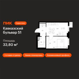 Продаётся 1-комн. квартира площадью 33,8 кв.м на 20 этаже 23 этажного дома (Корпус 3.3, Секция 3) проекта ПИК Кавказский бульвар 51. Светлый просторный подъезд на уровне земли, функциональная планировка, большие окна, c отделкой.