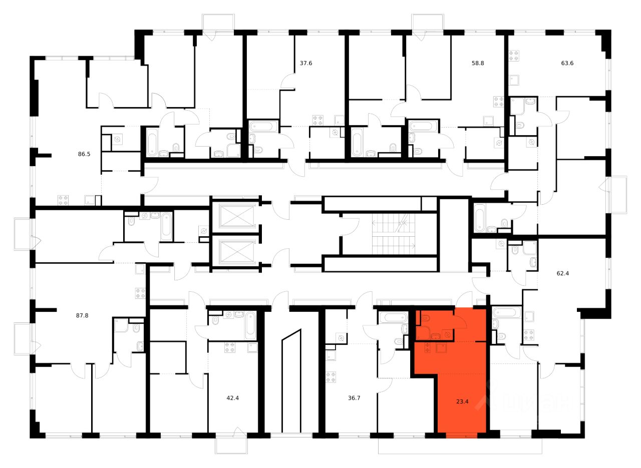 Продаётся квартира-студия площадью 23,4 кв.м на 2 этаже 16 этажного дома (Корпус 2.6/1.2, Секция 2) проекта ПИК Бунинская набережная. Светлый просторный подъезд на уровне земли, функциональная планировка, большие окна, предчистовая отделка.