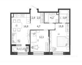 Кухня-гостинная - 16,8 м