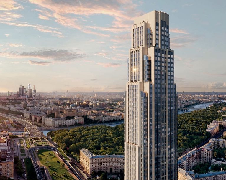 Премиальный небоскрёб представляет собой ультрасовременное, высокотехнологичное здание, идеальный синтез стилей культовых высоток Москвы.