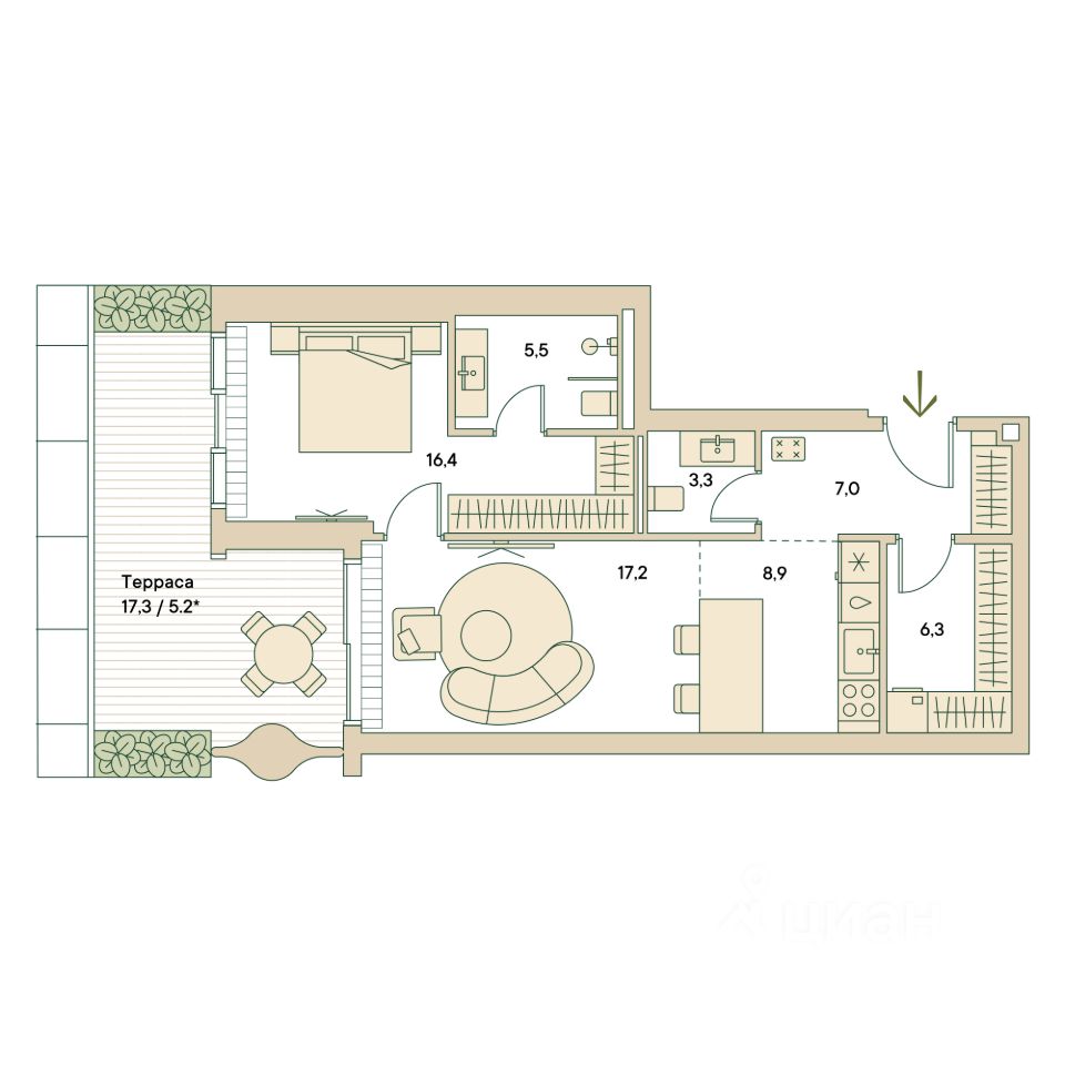 Двухкомнатная wellness-резиденция площадью 67.5 кв. м. на 3 этаже с видом на Рублёвское шоссе в доме премиум-класса Springs.