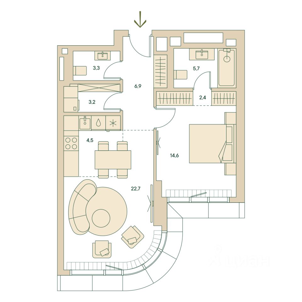 Двухкомнатная wellness-резиденция площадью 61.6 кв. м. на 8 этаже с видом на двор в доме премиум-класса Springs.