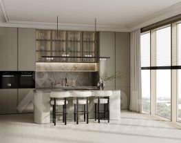 В квартире выполнена чистовая дизайнерская отделка. Резиденция наполнена светом и воздухом, благодаря панорамному остеклению и высоким потолкам.