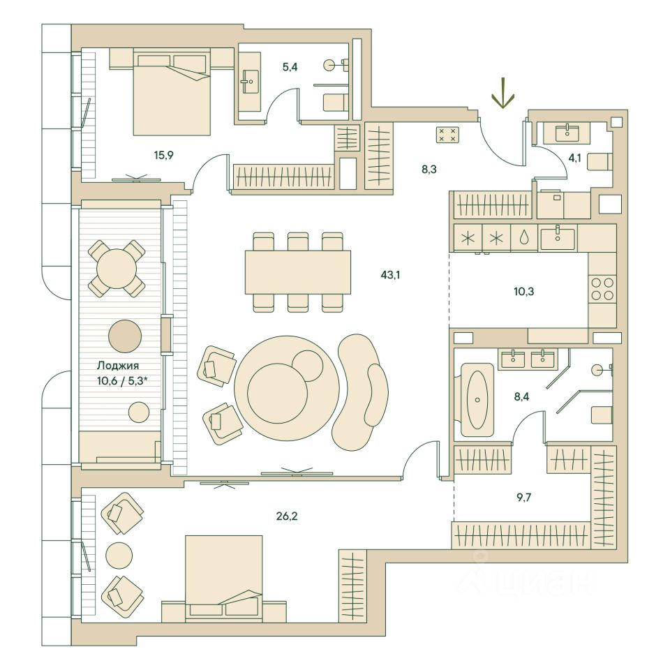 Трёхкомнатная wellness-резиденция площадью 135.7 кв. м. на 11 этаже с видом на Рублёвское шоссе в доме премиум-класса Springs.