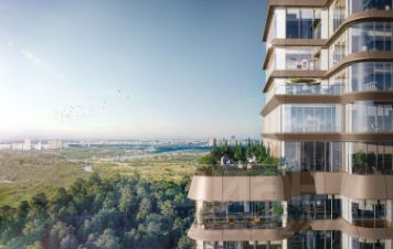 Концепция благоустройства Springs, разработанная студией Wowhaus, воплощает идею взаимного проникновения парка и озеленения внутренней территории: естественная растительность, дополненная акцентами из цветников, плавно вступает во двор. В сочетании с бионической архитектурой дом является органичным продолжением природного ландшафта парка.