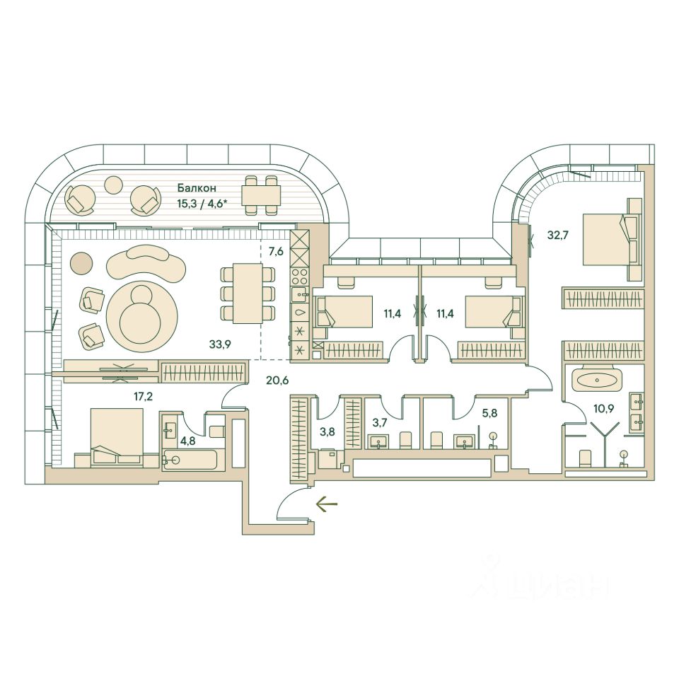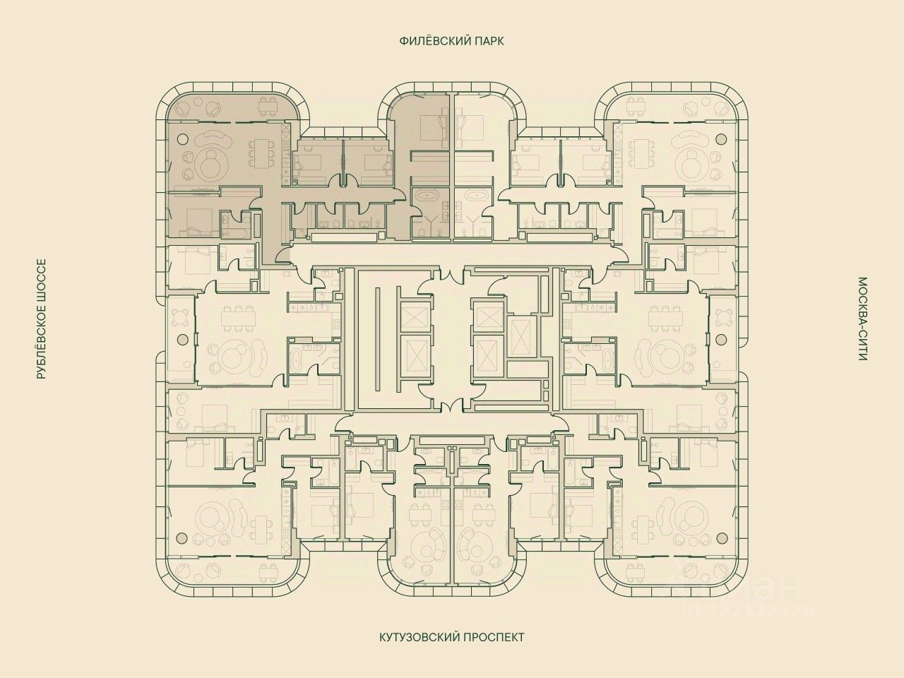 Пятикомнатная wellness-резиденция площадью 166.4 кв. м. на 13 этаже с видом на Рублёвское шоссе и парк в доме премиум-класса Springs.
