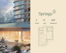 Двухкомнатная wellness-резиденция площадью 64.4 кв. м. на 13 этаже с видом на двор в доме премиум-класса Springs.
