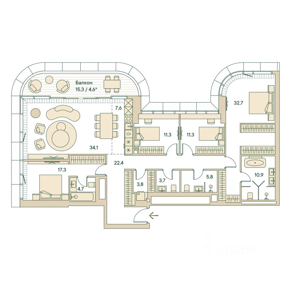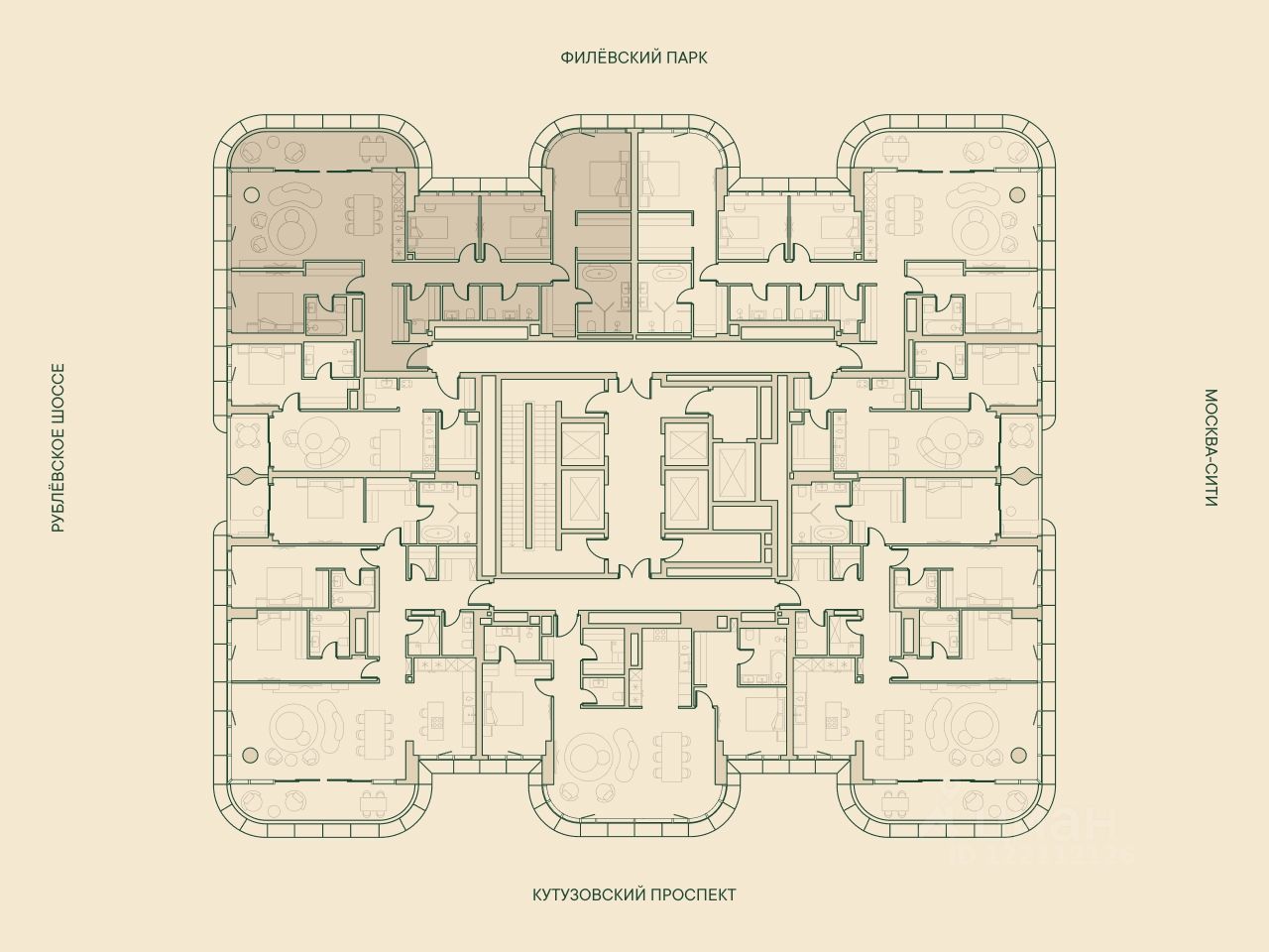 Пятикомнатная wellness-резиденция площадью 168.9 кв. м. на 16 этаже с видом на Рублёвское шоссе и парк в доме премиум-класса Springs.