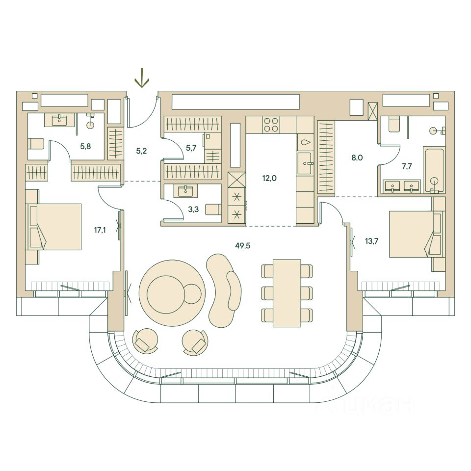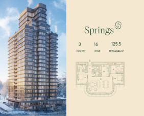 Трёхкомнатная wellness-резиденция площадью 125.5 кв. м. на 16 этаже с видом на двор в доме премиум-класса Springs.