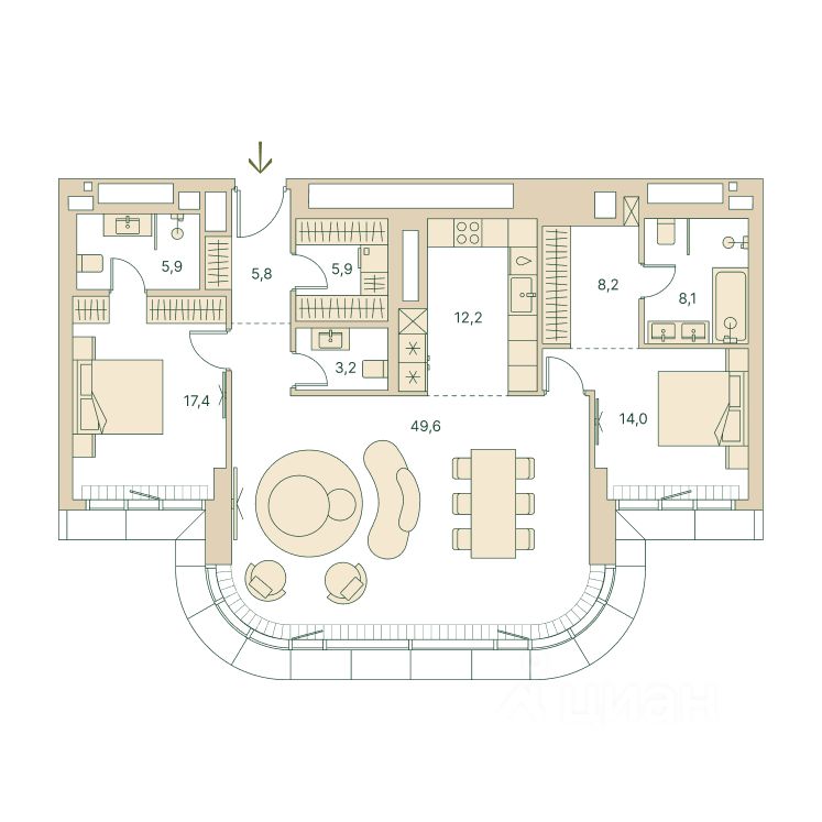 Трёхкомнатная велнес-резиденция площадью 130.3 кв. м. на 16 этаже с видом на двор в доме премиум-класса Springs.