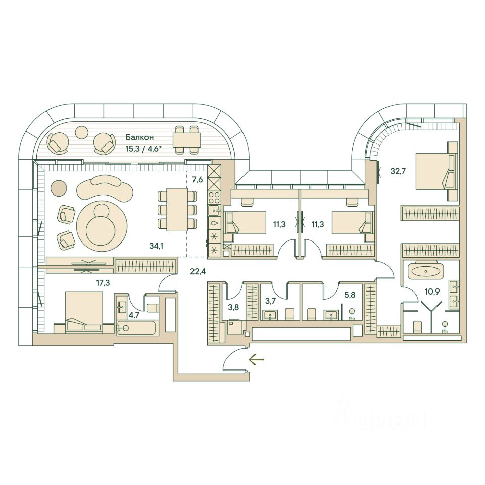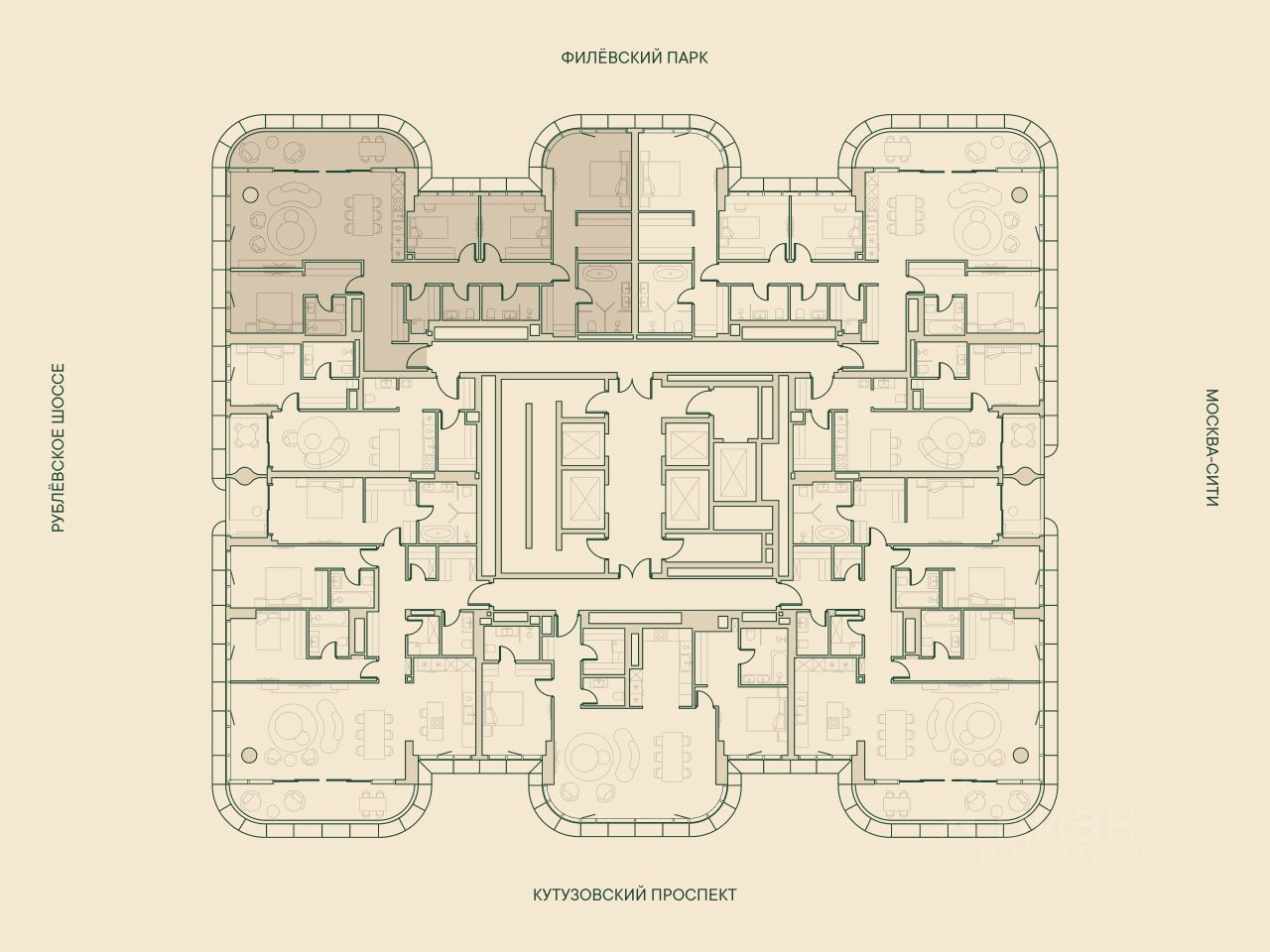 Пятикомнатная wellness-резиденция площадью 168.9 кв. м. на 19 этаже с видом на Рублёвское шоссе и парк в доме премиум-класса Springs.