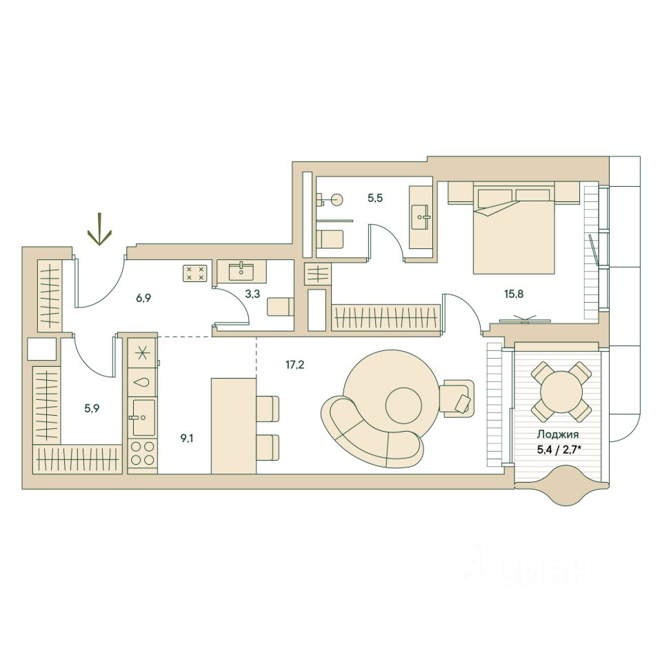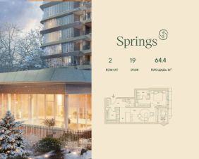 Двухкомнатная wellness-резиденция площадью 64.4 кв. м. на 19 этаже с видом на центр в доме премиум-класса Springs.