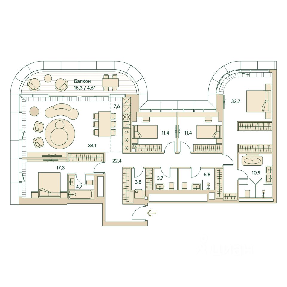 Пятикомнатная wellness-резиденция площадью 168.6 кв. м. на 20 этаже с видом на Рублёвское шоссе и парк в доме премиум-класса Springs.