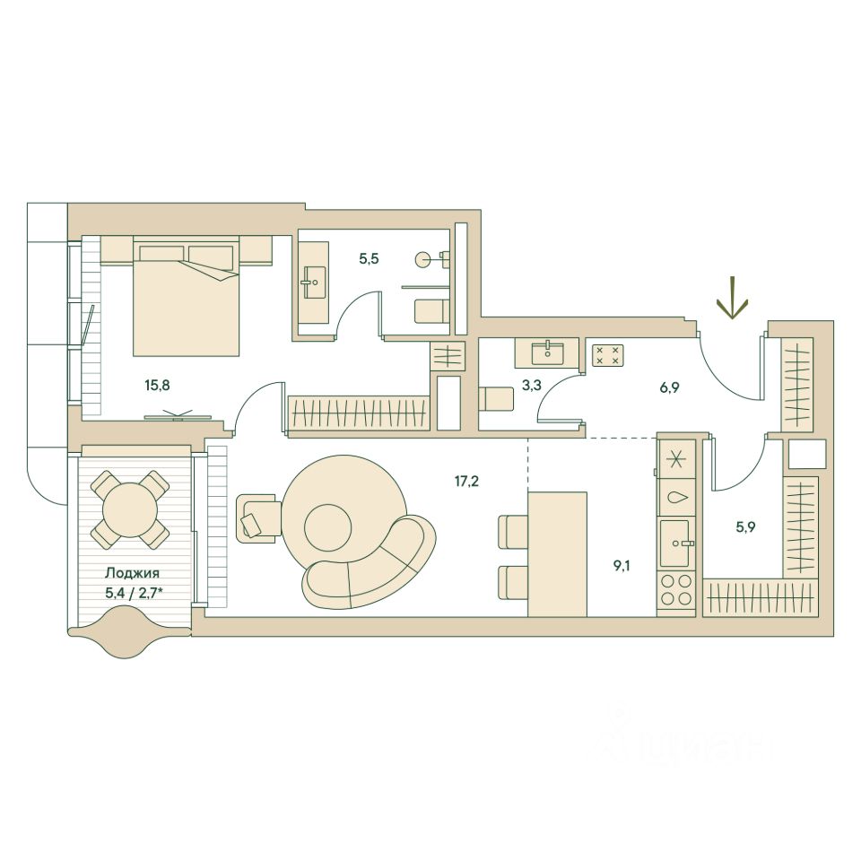 Двухкомнатная wellness-резиденция площадью 65.3 кв. м. на 20 этаже с видом на Рублёвское шоссе в доме премиум-класса Springs.