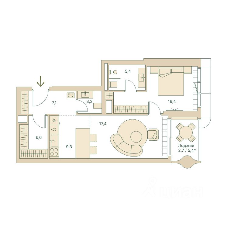 Двухкомнатная велнес-резиденция площадью 68.1 кв. м. на 20 этаже с видом на центр в доме премиум-класса Springs.