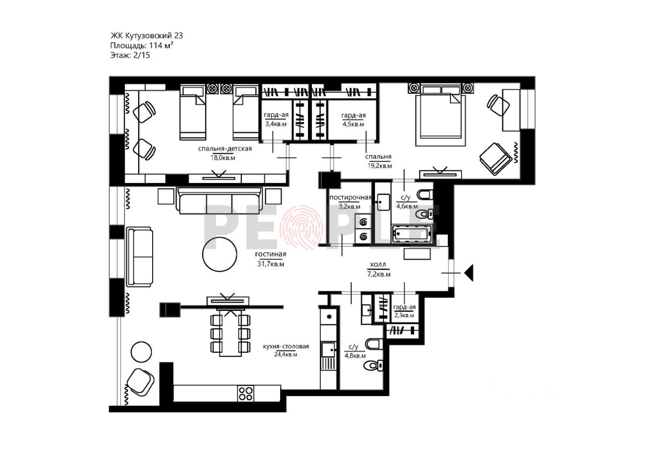 Квартира ПОЛНОСТЬЮ УКОМПЛЕКТОВАНА мебелью, техникой, наполнением гардеробных, текстилем.