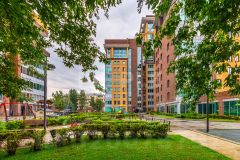 Комплекс имеет большую территорию с развитой инфраструктурой и элементами ландшафтного дизайна. Презентабельная входная группа. Безопасность обеспечивается собственной службой охраны. Закрытая и охраняемая территория. Ведется круглосуточное наблюдение. Подземный паркинг.