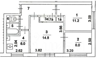 Квартира расположена на 1-м этаже 9-ти этажного дома. Общая площадь 50,8 кв.м. Площадь комнат 14.6 кв.м. + 8.0 кв.м., 11.2 кв.м. Кухня 6,2 кв.м.