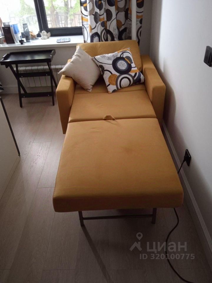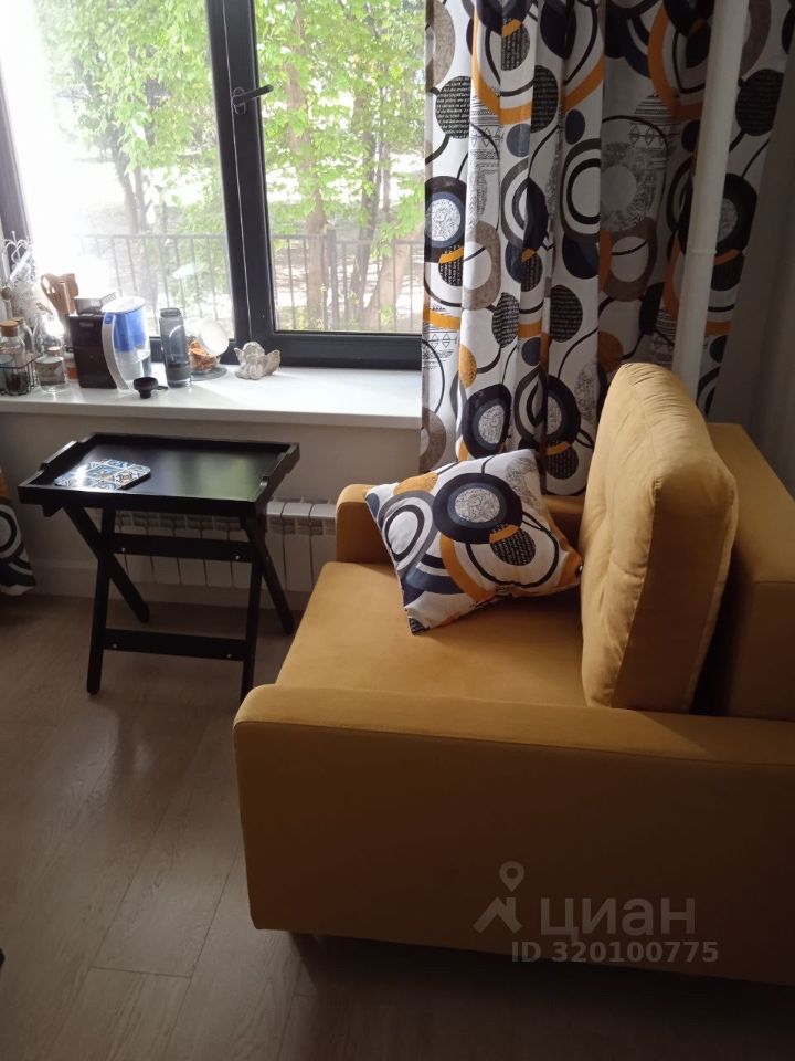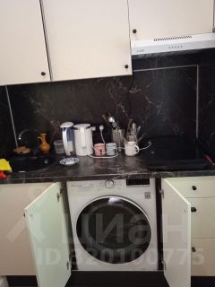 Студия расположена на этаже 1а (ниже есть еще один этаж, который считается первым, и цокольные помещения под ним). В помещении ПОЛНОЦЕННОЕ большое ОКНО, высокие потолки (при желании можно сделать антресоль/спальню). Вся мебель сделана НА ЗАКАЗ под это помещение, есть полноценное рабочее место, кухонная зона с холодильником, стиральной машиной с сушкой, индукционной плитой с вытяжкой, много мест для хранения, что большая редкость для таких маленьких комнат.