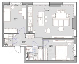 Квартира выполнена с дизайнерским ремонтом и имеет функциональную планировку: большая кухня-гостиная - 32 кв.м. и две изолированные комнаты по 14 кв.м. каждая. Также в квартире расположено два санузла в и два французских балкона.