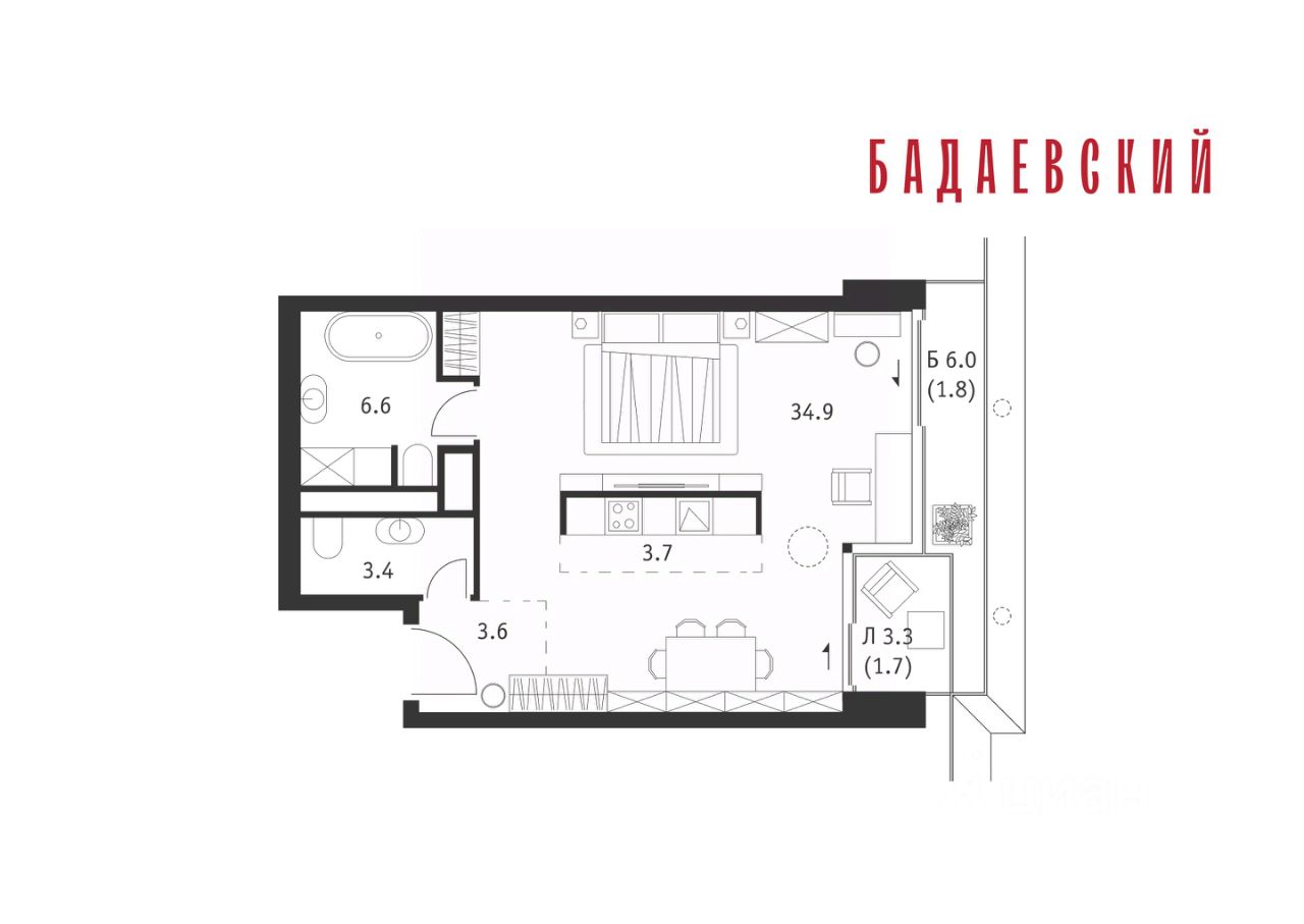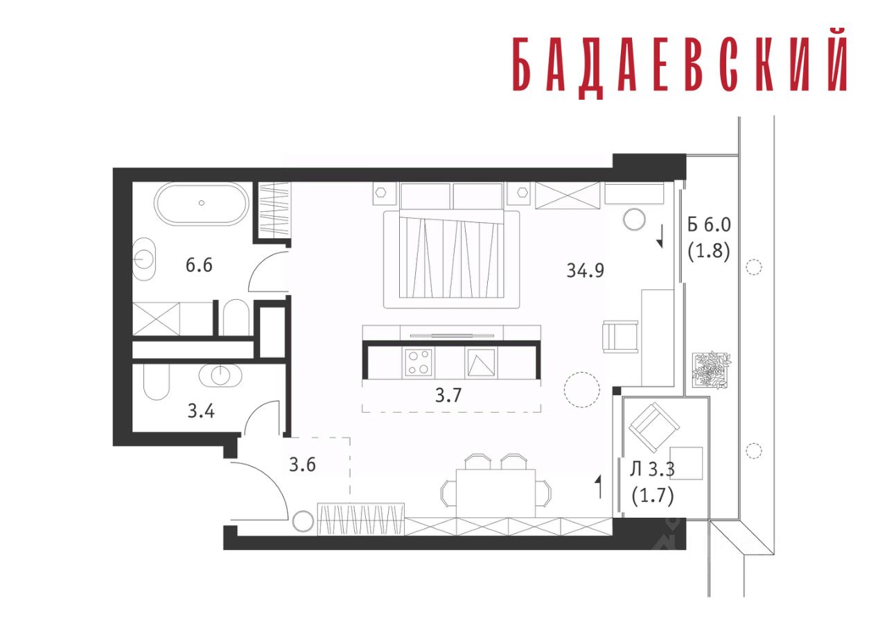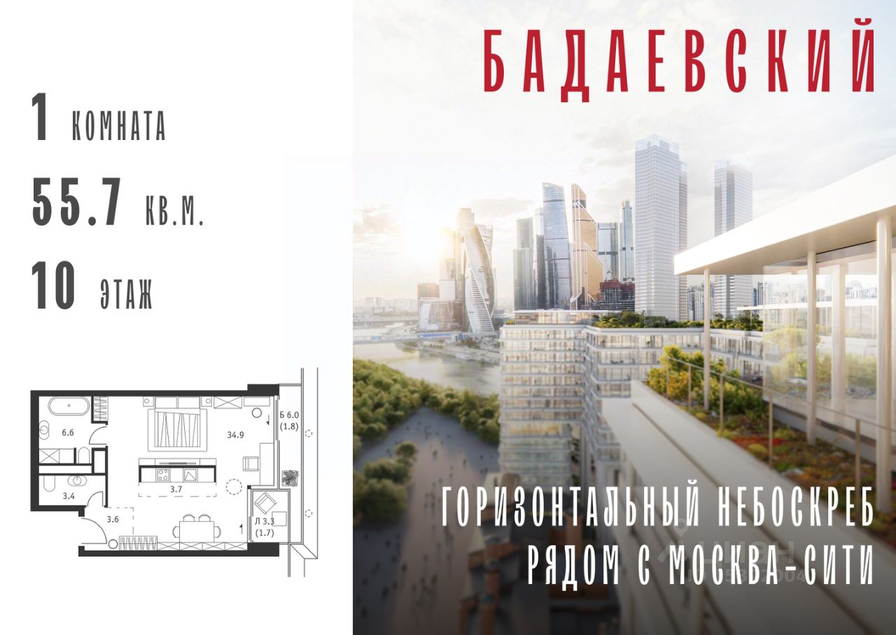 Продаётся 1-комнатная квартира общей площадью 55.70 м² на 10 этаже Жилого Комплекса Бадаевский.