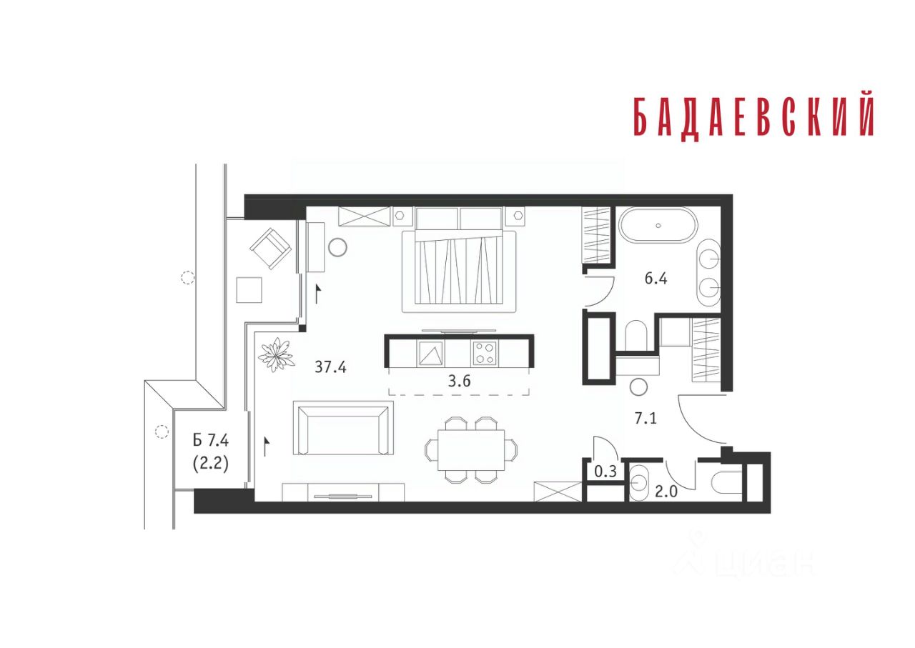 Продаётся 1-комнатная квартира общей площадью 59.00 м² на 11 этаже Жилого Комплекса Бадаевский.