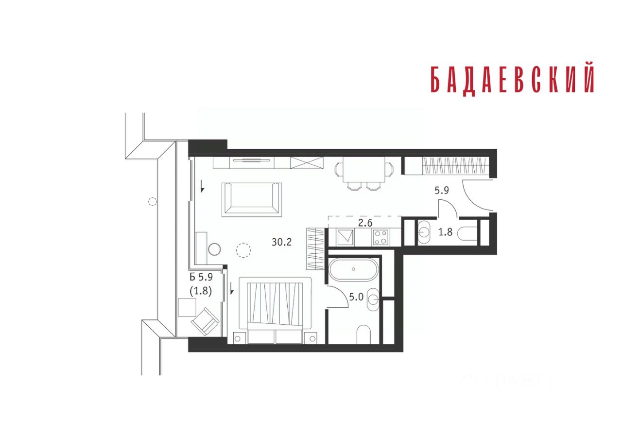 Продаётся 1-комнатная квартира общей площадью 47.30 м² на 13 этаже Жилого Комплекса Бадаевский.