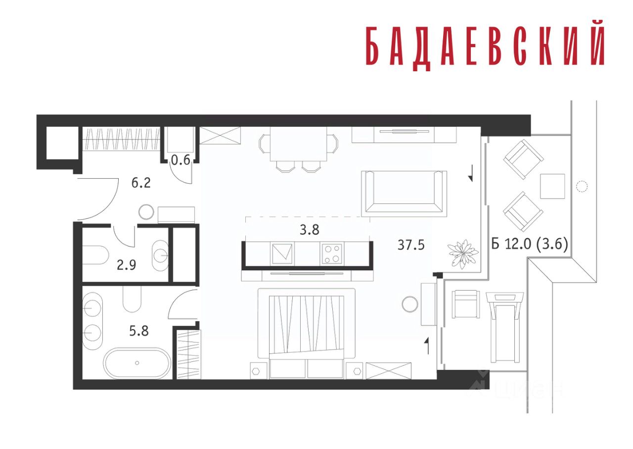 Продаётся 1-комнатная квартира общей площадью 60.40 м² на 11 этаже Жилого Комплекса Бадаевский.