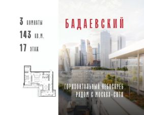 Продаётся 3-комнатная квартира общей площадью 143.00 м² на 17 этаже Жилого Комплекса Бадаевский.