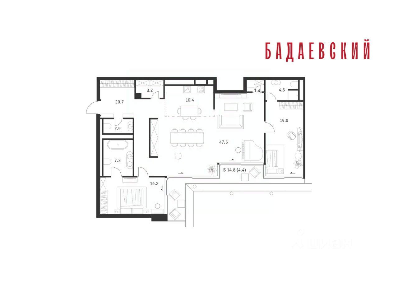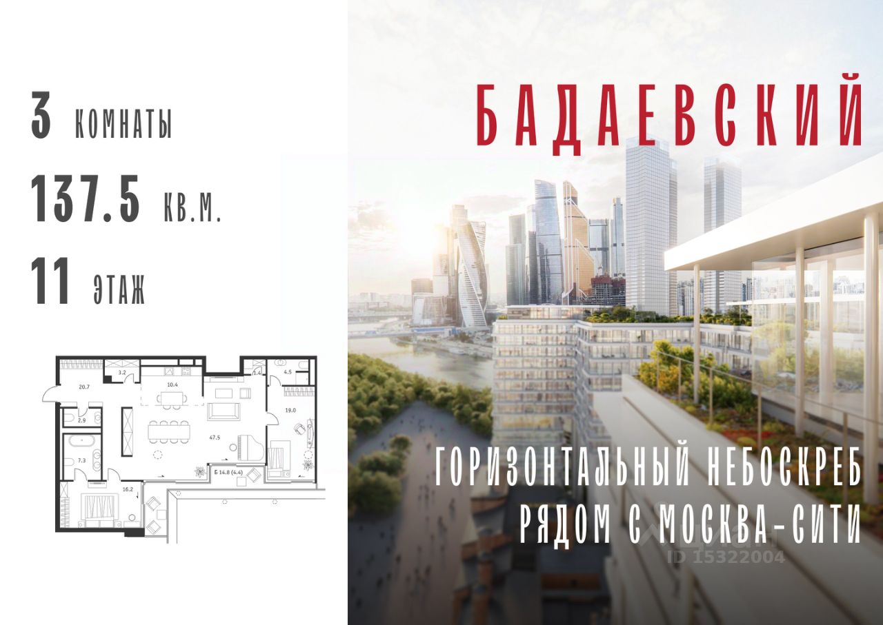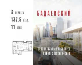 Продаётся 3-комнатная квартира общей площадью 137.50 м² на 11 этаже Жилого Комплекса Бадаевский.