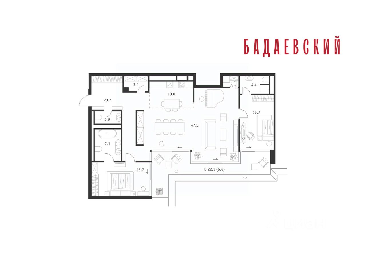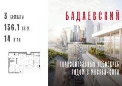 Продаётся 3-комнатная квартира общей площадью 136.10 м² на 14 этаже Жилого Комплекса Бадаевский.