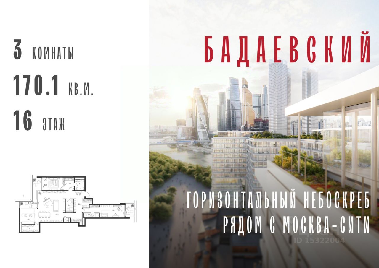 Продаётся 3-комнатная квартира общей площадью 170.10 м² на 16 этаже Жилого Комплекса Бадаевский.