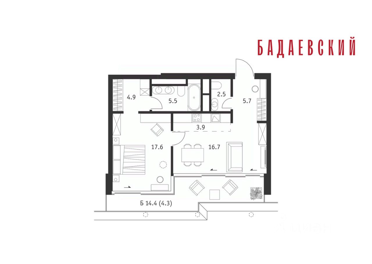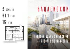 Продаётся 2-комнатная квартира общей площадью 61.10 м² на 15 этаже Жилого Комплекса Бадаевский.