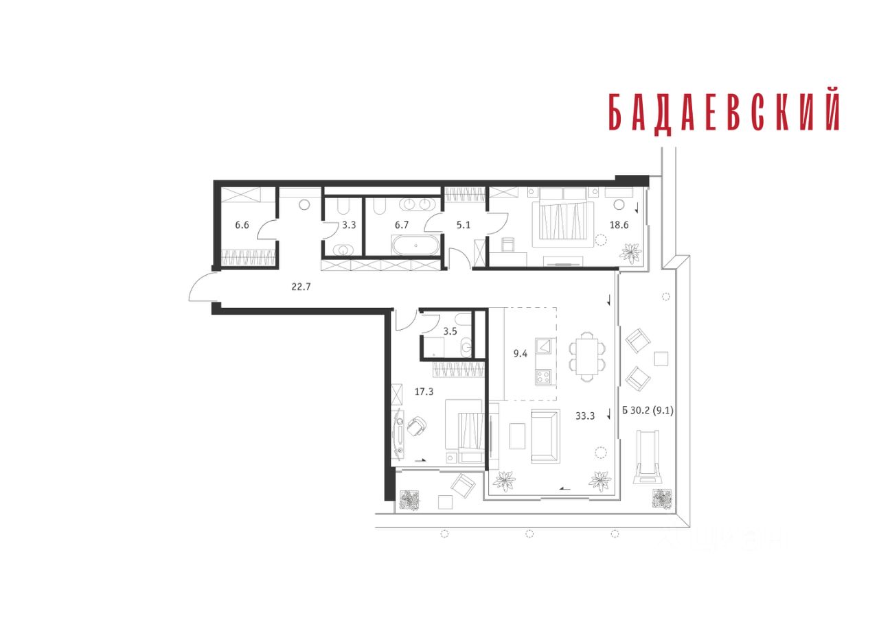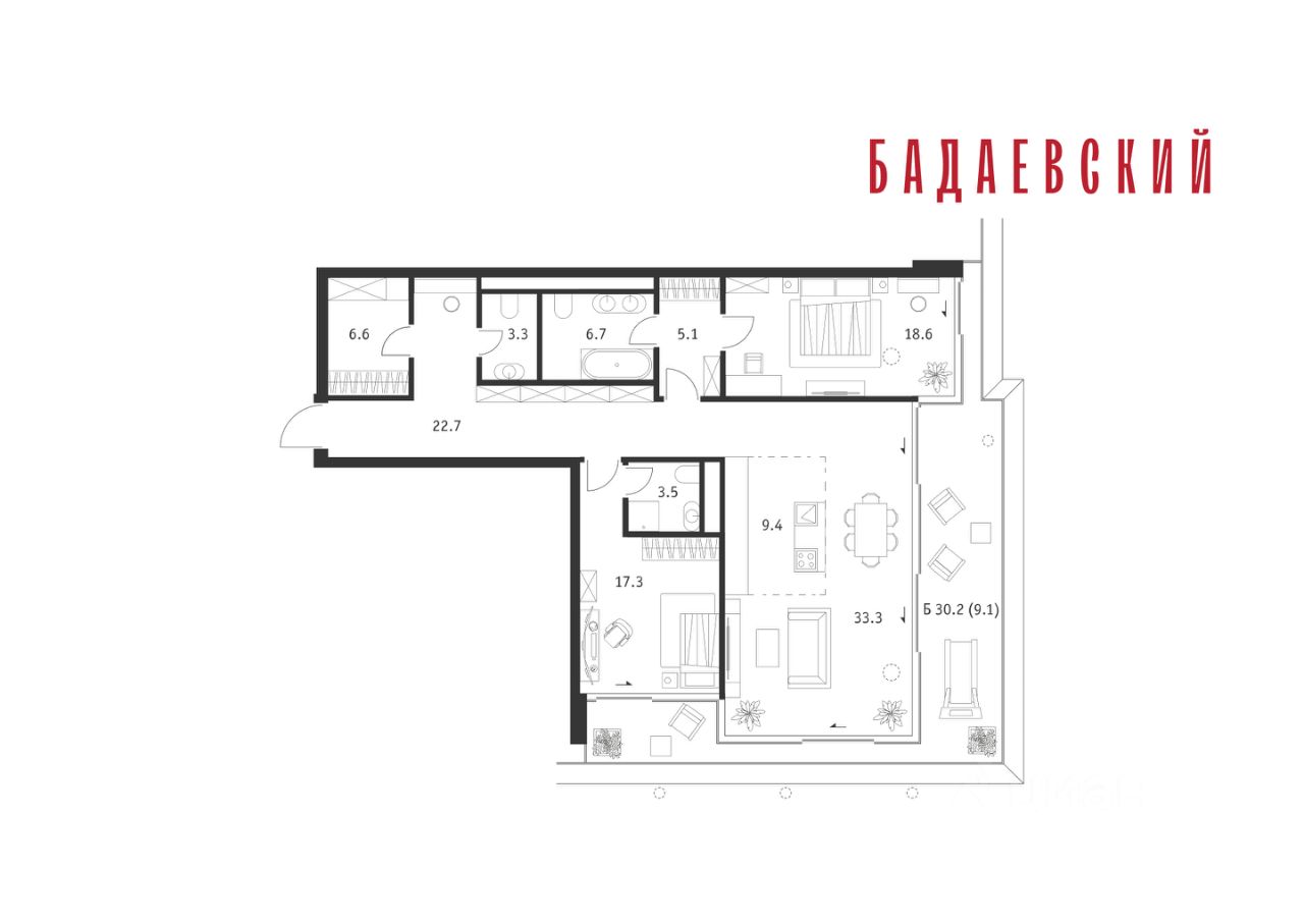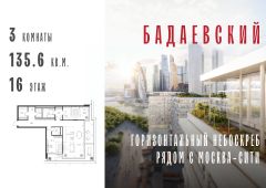 Продаётся 3-комнатная квартира общей площадью 135.60 м² на 16 этаже Жилого Комплекса Бадаевский.