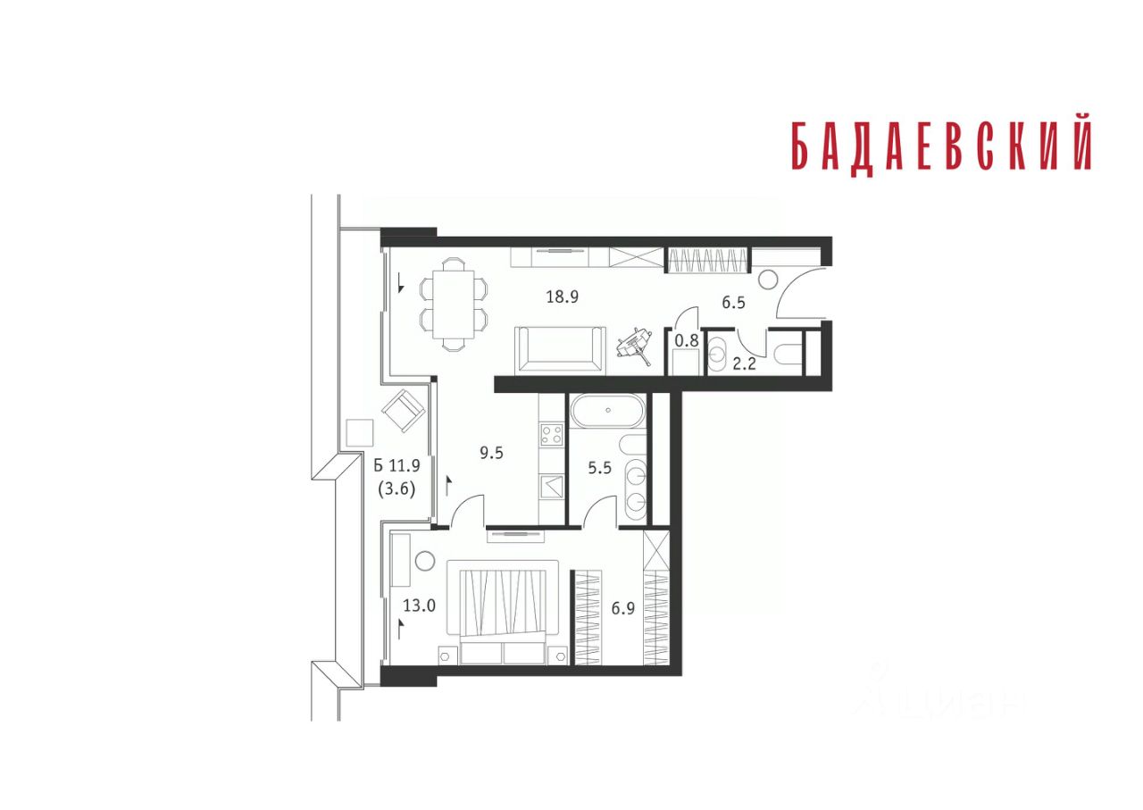 Продаётся 2-комнатная квартира общей площадью 66.90 м² на 10 этаже Жилого Комплекса Бадаевский.