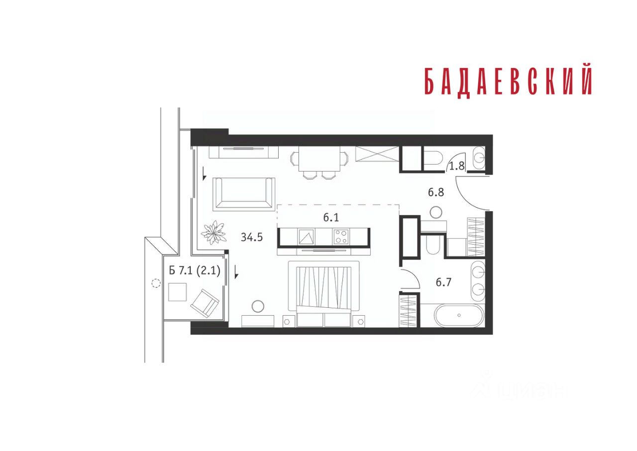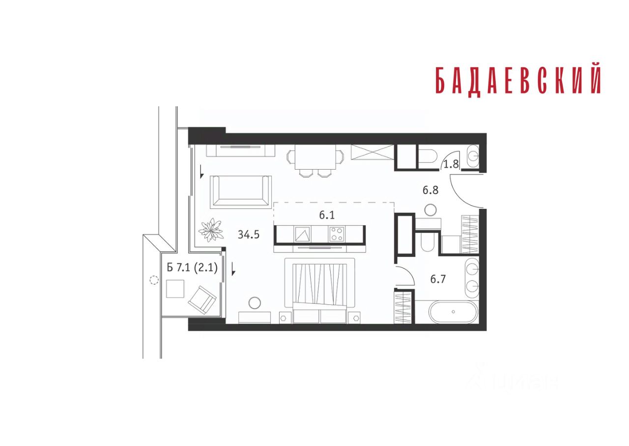 Продаётся 1-комнатная квартира общей площадью 58.00 м² на 10 этаже Жилого Комплекса Бадаевский.