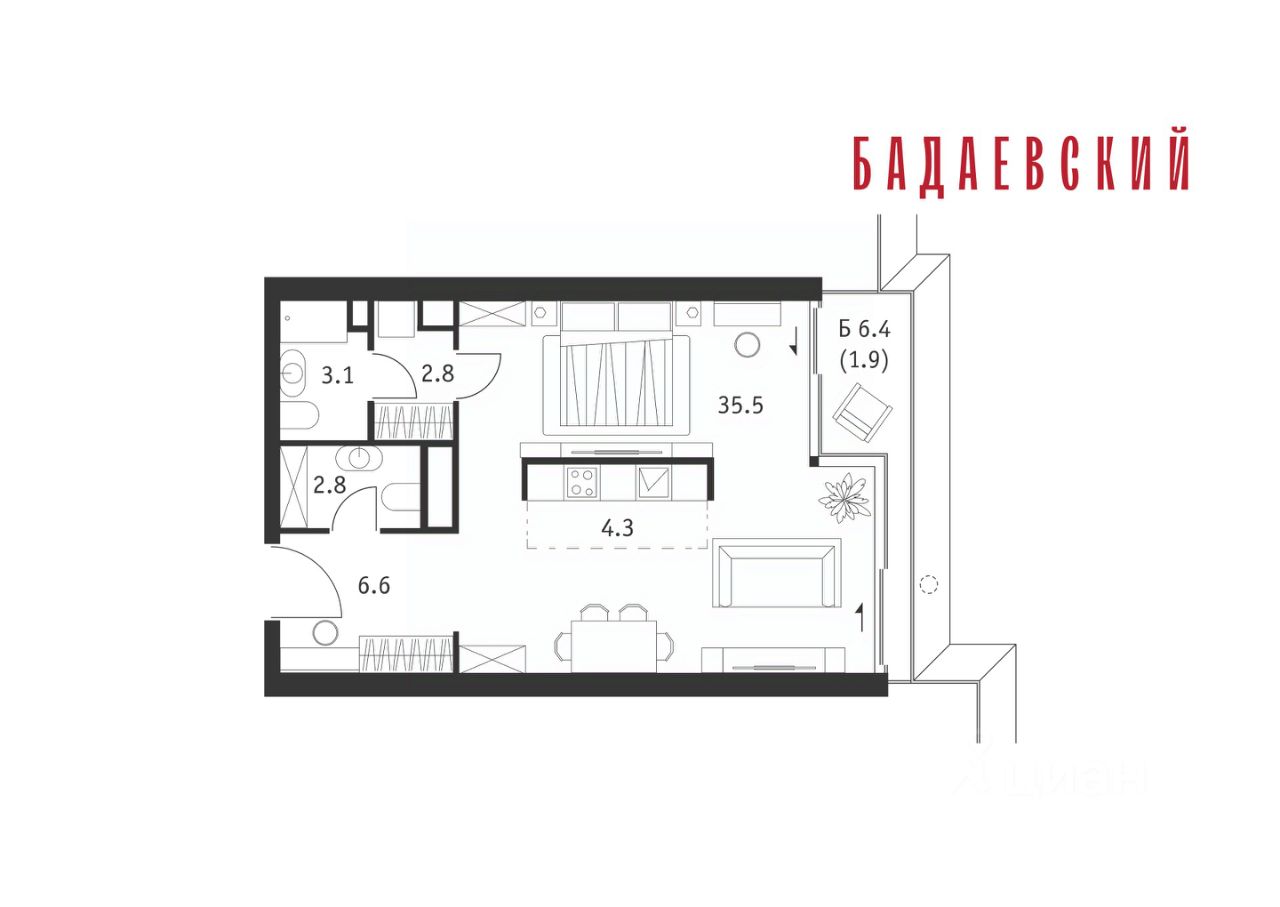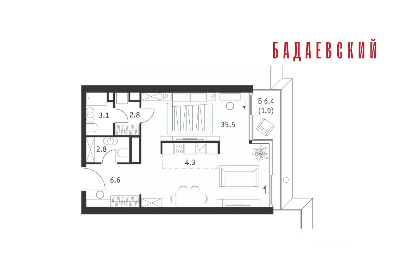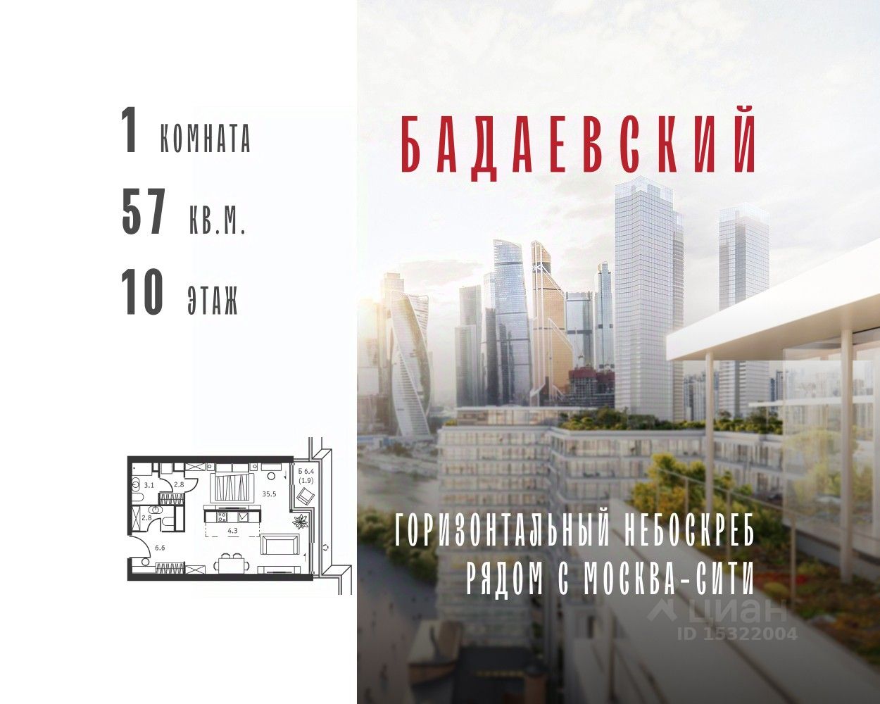 Продаётся 1-комнатная квартира общей площадью 57.00 м² на 10 этаже Жилого Комплекса Бадаевский.