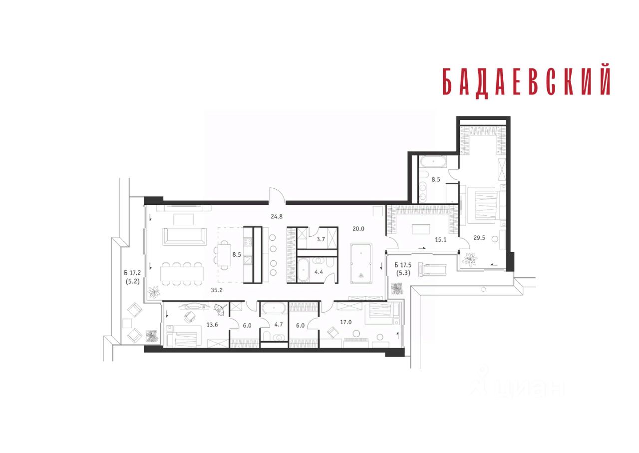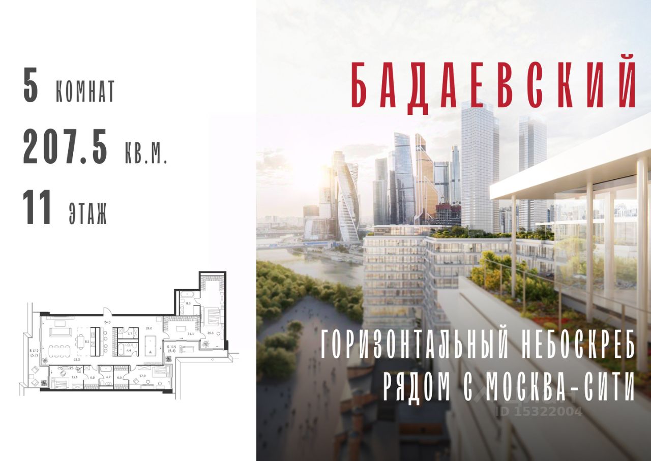 Продаётся 5-комнатная квартира общей площадью 207.50 м² на 11 этаже Жилого Комплекса Бадаевский.