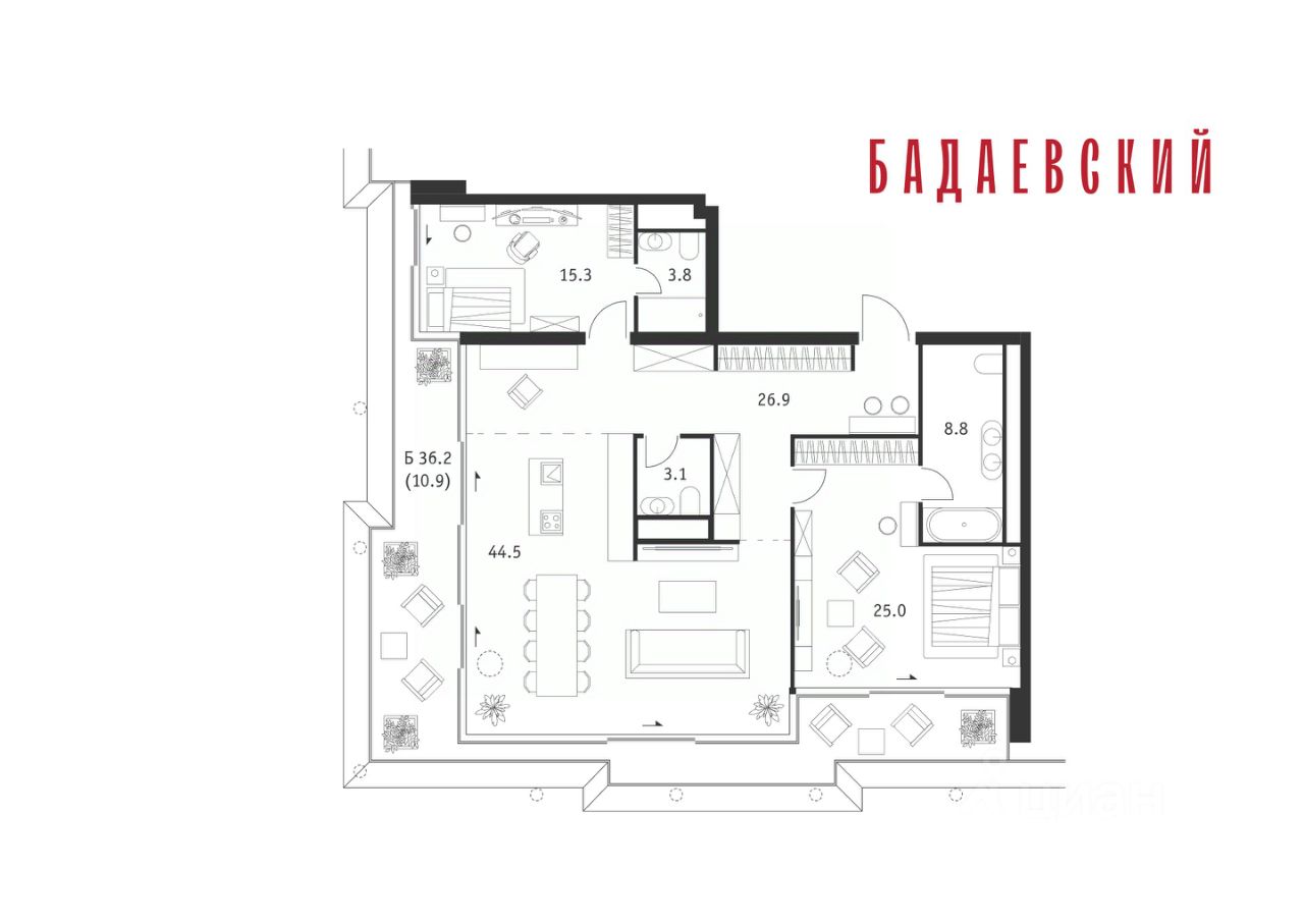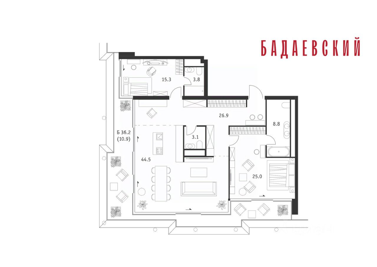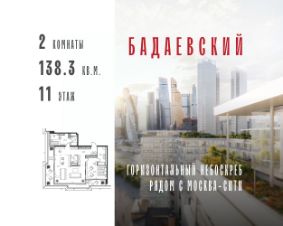 Продаётся 2-комнатная квартира общей площадью 138.30 м² на 11 этаже Жилого Комплекса Бадаевский.