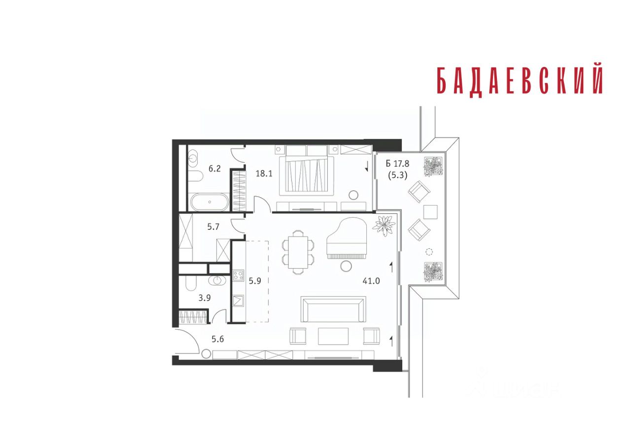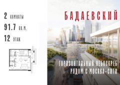 Продаётся 2-комнатная квартира общей площадью 91.70 м² на 12 этаже Жилого Комплекса Бадаевский.