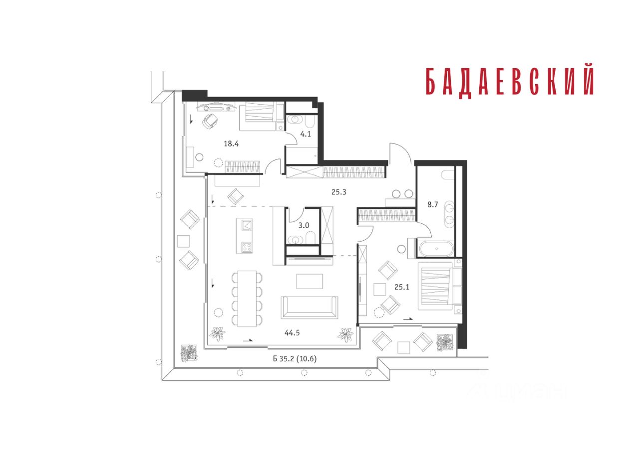 Продаётся 2-комнатная квартира общей площадью 139.70 м² на 13 этаже Жилого Комплекса Бадаевский.