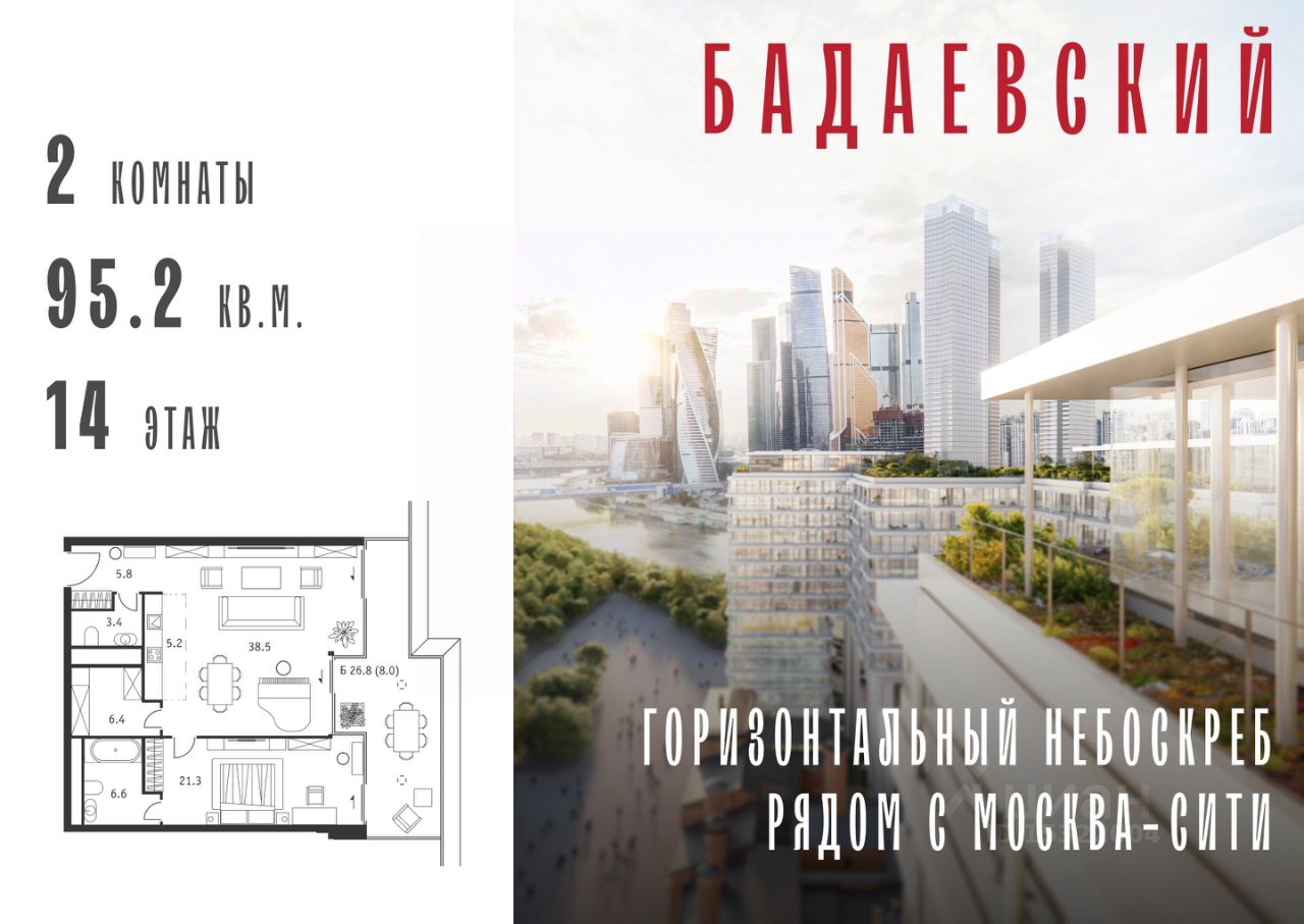 Продаётся 2-комнатная квартира общей площадью 95.20 м² на 14 этаже Жилого Комплекса Бадаевский.