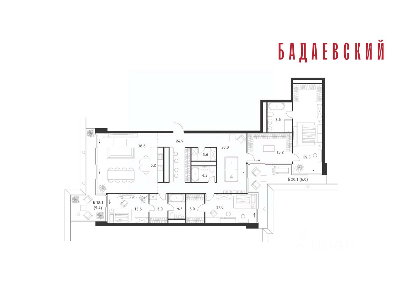Продаётся 5-комнатная квартира общей площадью 208.50 м² на 15 этаже Жилого Комплекса Бадаевский.