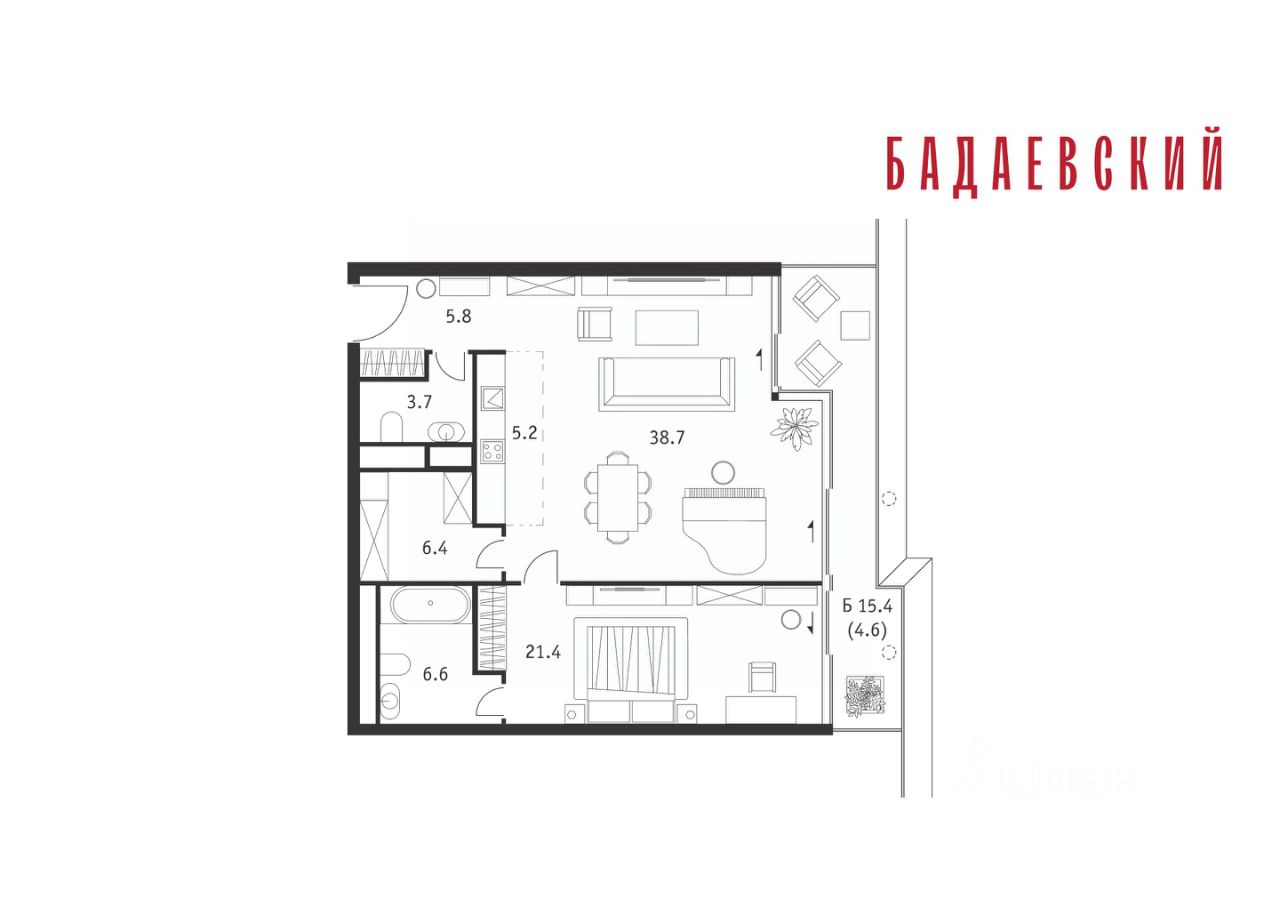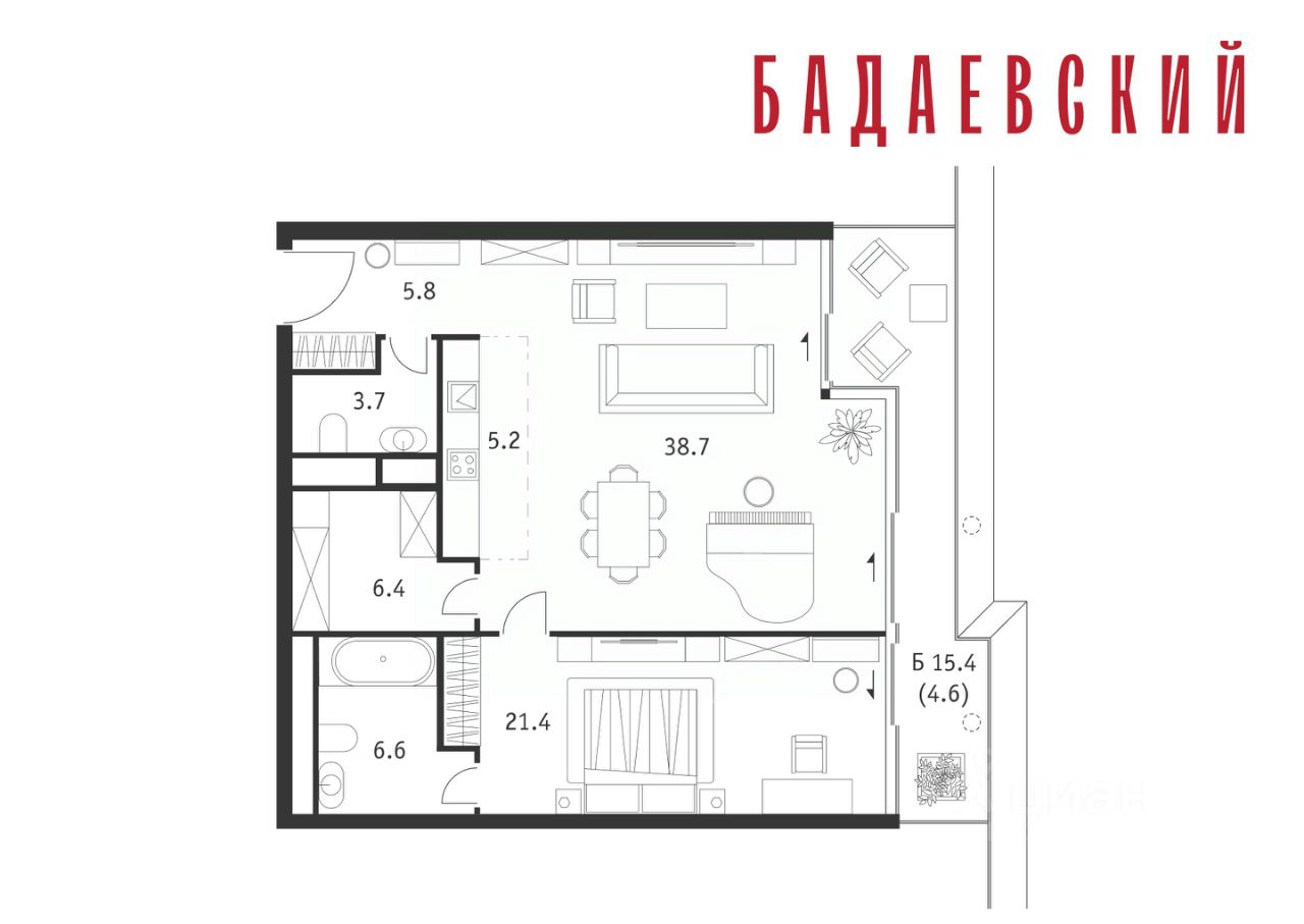 Продаётся 2-комнатная квартира общей площадью 92.40 м² на 15 этаже Жилого Комплекса Бадаевский.