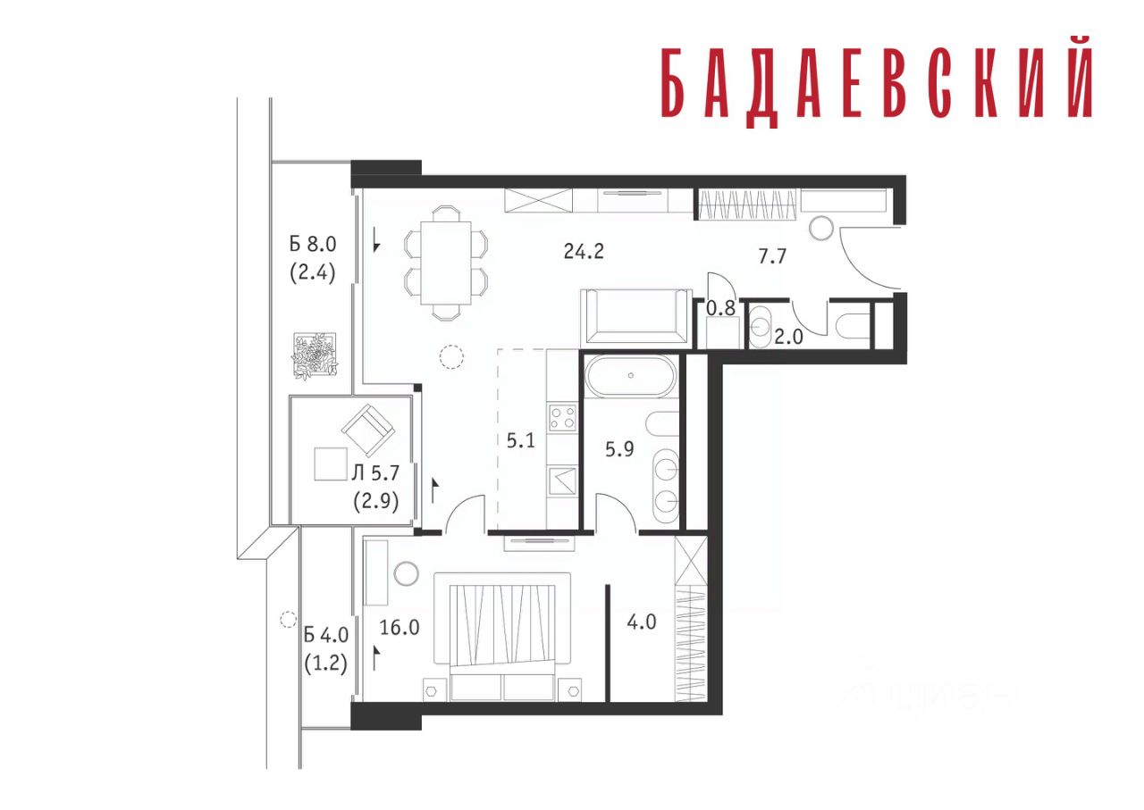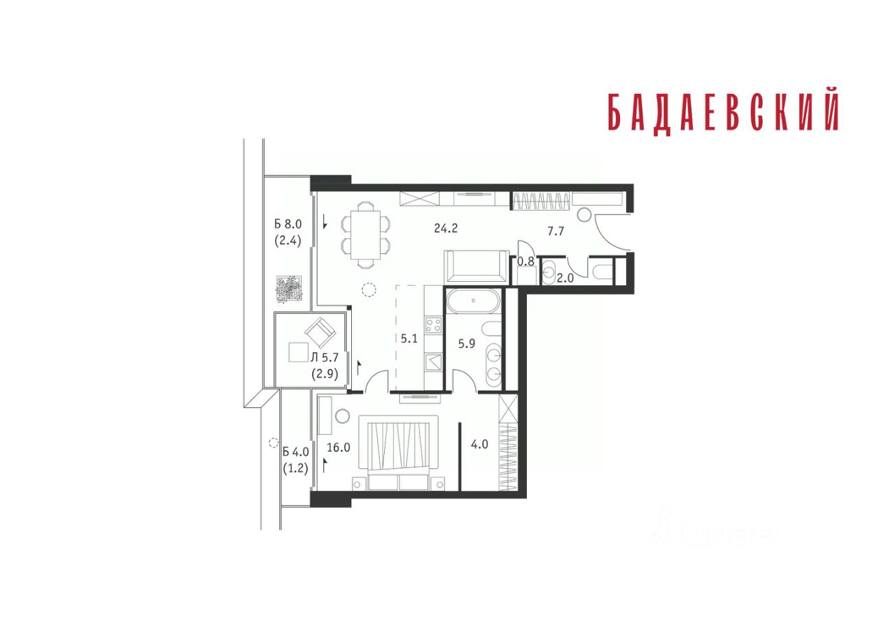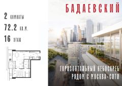 Продаётся 2-комнатная квартира общей площадью 72.20 м² на 16 этаже Жилого Комплекса Бадаевский.
